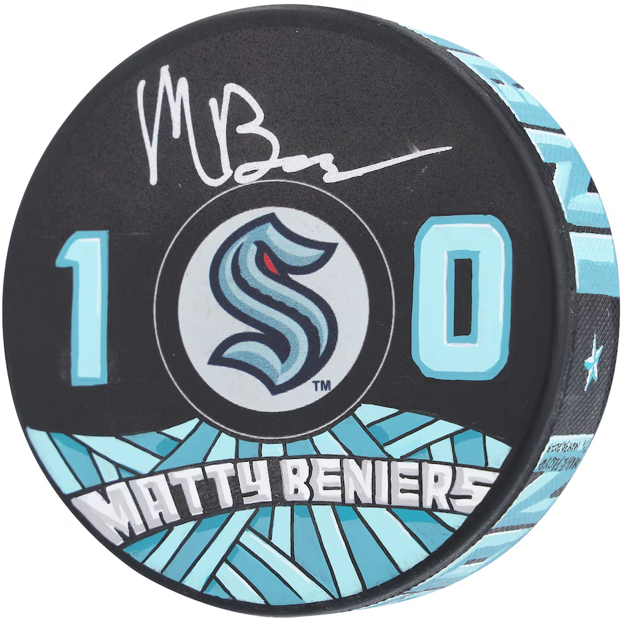 Matty Beniers Seattle Kraken Autographed Fanatics Authentic Puck - Art by Mike Floyd - Limited Edition #1/1
