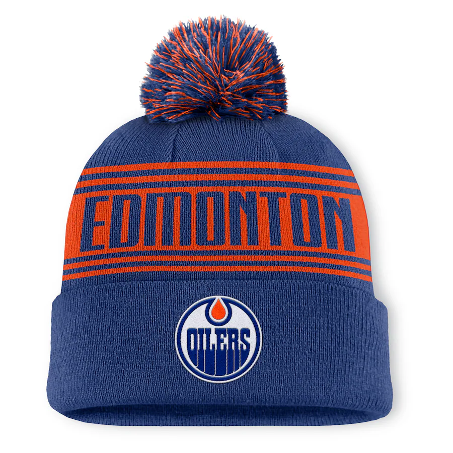 Men's Edmonton Oilers Fanatics Navy Fundamental Cuffed Knit Hat with Pom