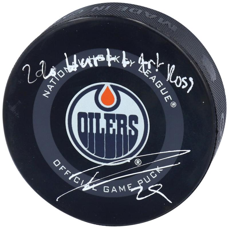 Autographed Edmonton Oilers Leon Draisaitl Fanatics Authentic Puck with Navy Alternate Jersey Deluxe Tall Hockey Puck Display Case