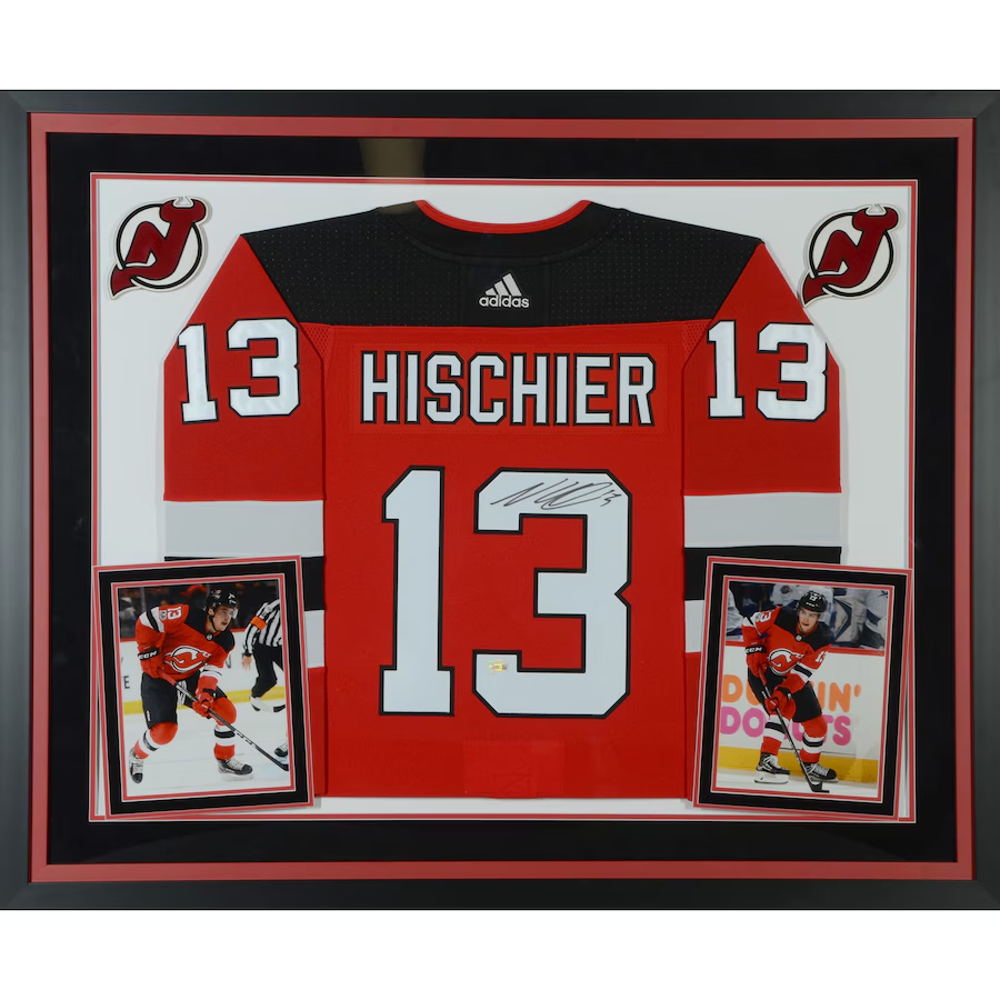 Autographed New Jersey Devils Nico Hischier Fanatics Authentic Deluxe Framed Red Adidas Authentic Jersey