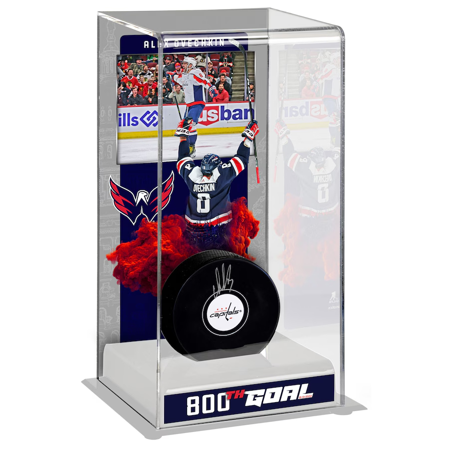 Alexander Ovechkin Washington Capitals Autographed Fanatics Authentic Puck with 800th Goal Deluxe Tall Hockey Puck Display Case